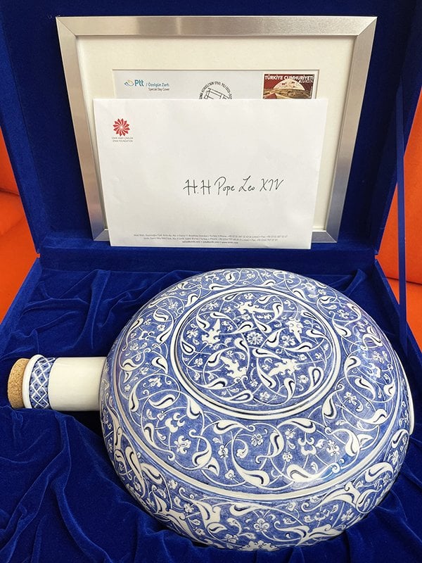 Bu anlamlı ziyaretin hatırası olarak, İznik Vakfı atölyesinde özel bir hacı matarası üretilerek Papa 14. Leo’ya ve Fener-Rum Patriği Bartholomeos'ya hediye edildi. Orijinali Sevr Müzesi’nde bulunan 16. yüzyıla ait İznik üretimi mataradan yola çıkılarak, aslına uygun bir kalıp hazırlandı ve üretim süreci yaklaşık 72 günde tamamlandı. Tamamen el işçiliğiyle hazırlanan bu özel hediye, mavi-beyaz dönemin özgün ve seçkin örneklerinden biridir.